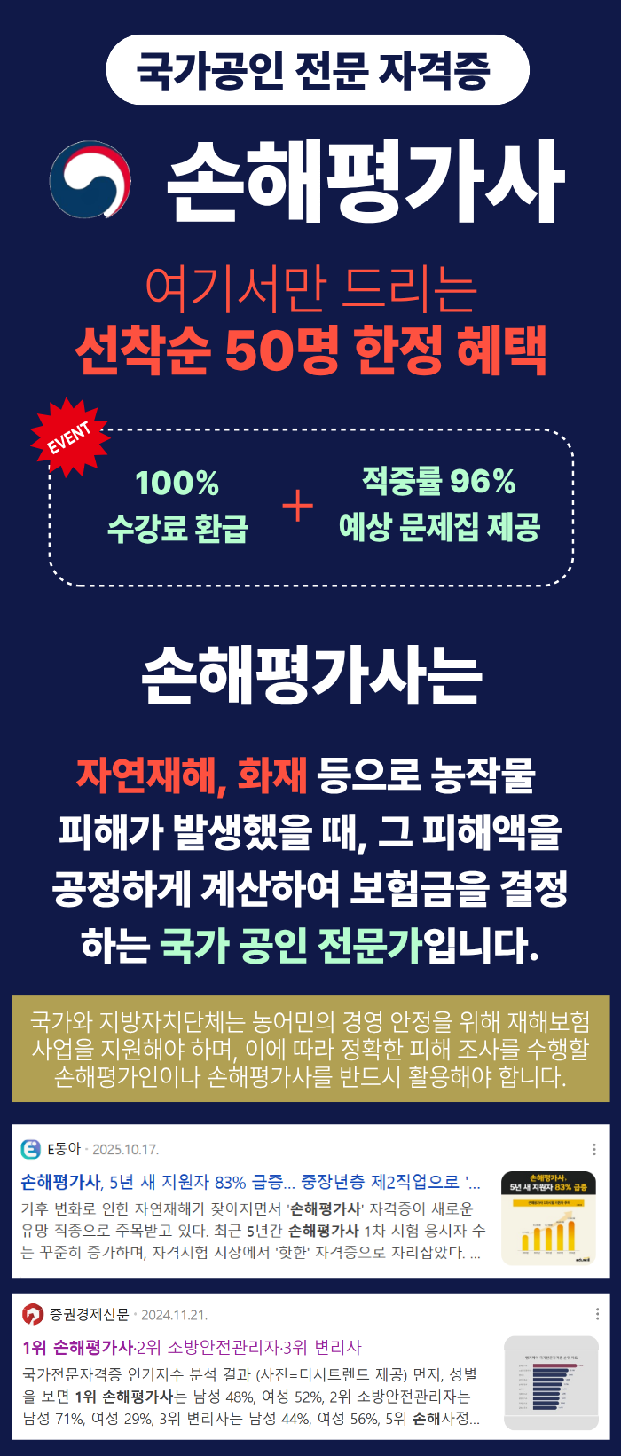 • 비용 투자: 0원 (수강료/교안/시험응시료 전액 면제)