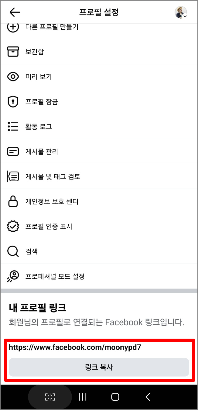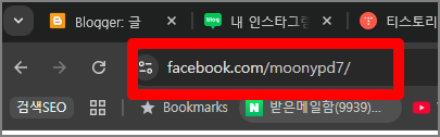 - 주소창에 보시면 내 페이스북 주소가 나와 있으니 복사해서 사용하시면 됩니다.