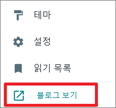 6. 왼쪽 메뉴 맨 아래 '블로그 보기'를 클릭 해 내 블로그를 확인해 보세요.