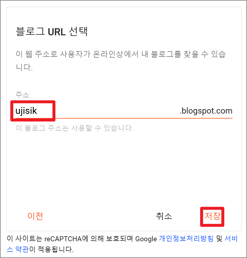 3. 블로그 주소 URL을 만듭니다. 영어로만 가능합니다. 특별히 외워서 사용할 일을 없긴 합니다. 많은 경우 수익형 블로그는 도메인을 구매해서 연결하기도 하니깐요.