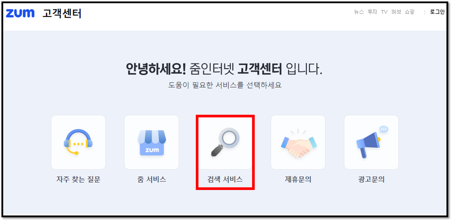 가운데 있는 '검색 서비스'를 클릭합니다.