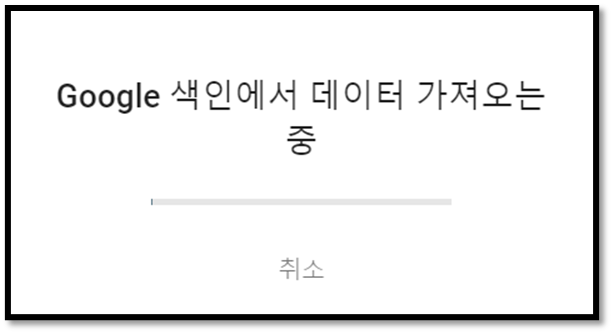 'Google 색인에서 데이터 가져오는 중' 이라고 나옵니다. 잠시 기다리세요.