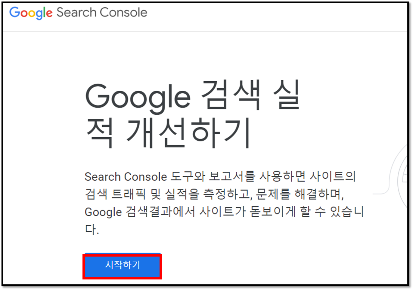 '시작하기' 버튼 클릭합니다. (만약 티스토리의 소유권이 승인되지 않았다면 위의 네이버처럼 구글 서치콘솔에서 제공하는 메타태그를 <head>에 넣어야 합니다. 화면에 나오니 그대로 따라하세요. )