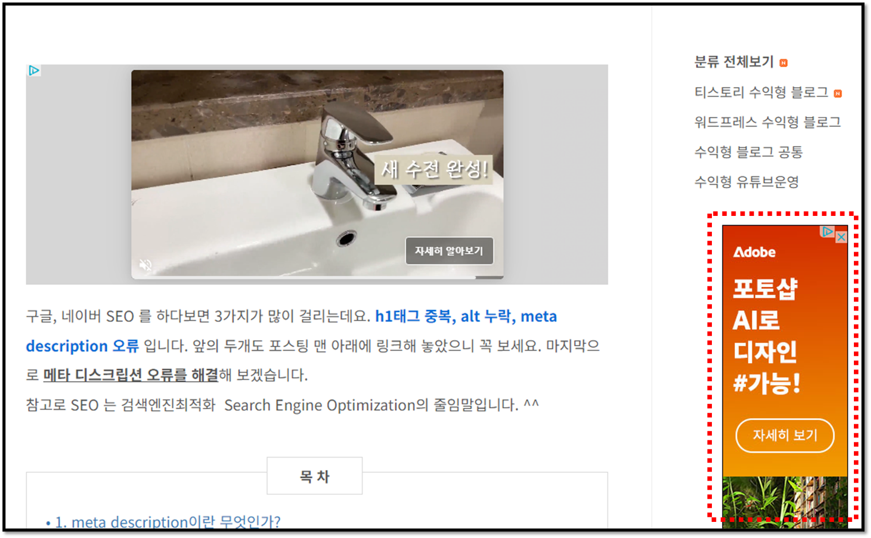 사이드바 광고 설정이 가장 어렵습니다. 그대로 따라오세요.