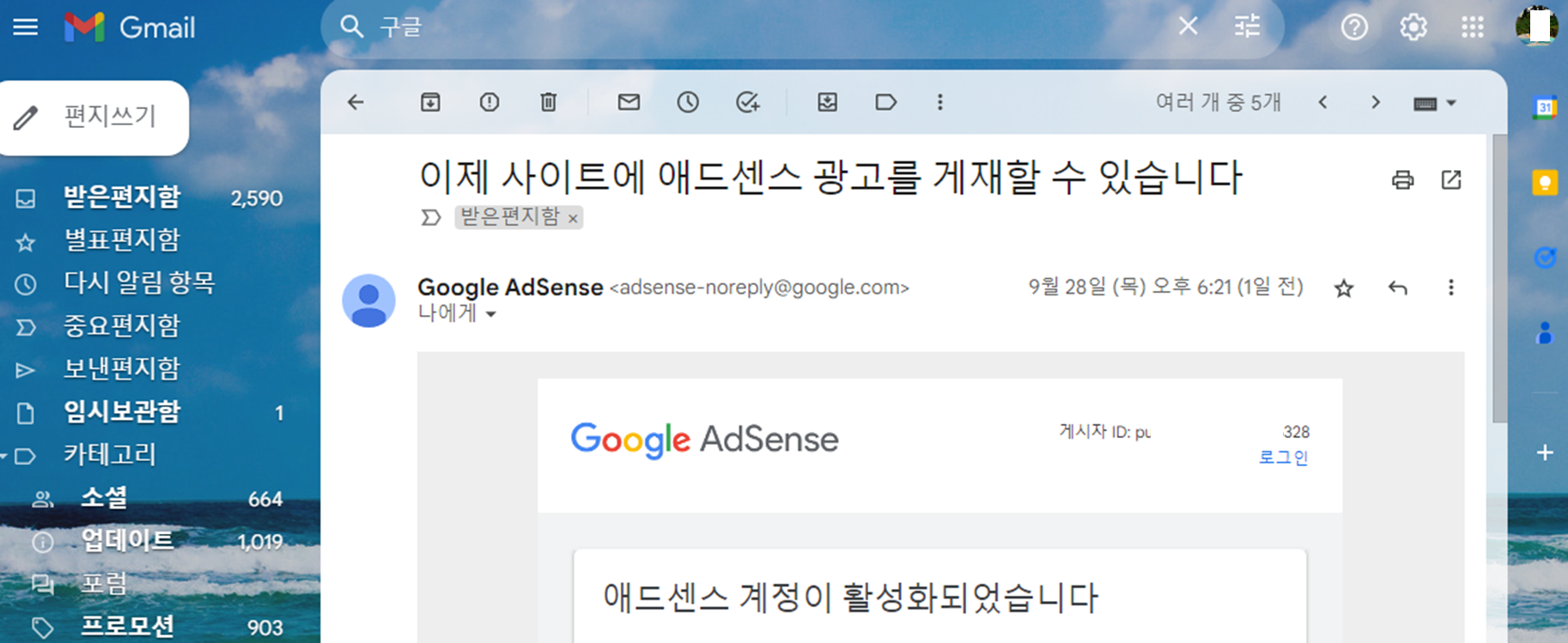 - 9월 28일 : 애드센스 고시 통과(총 포스팅 11개)