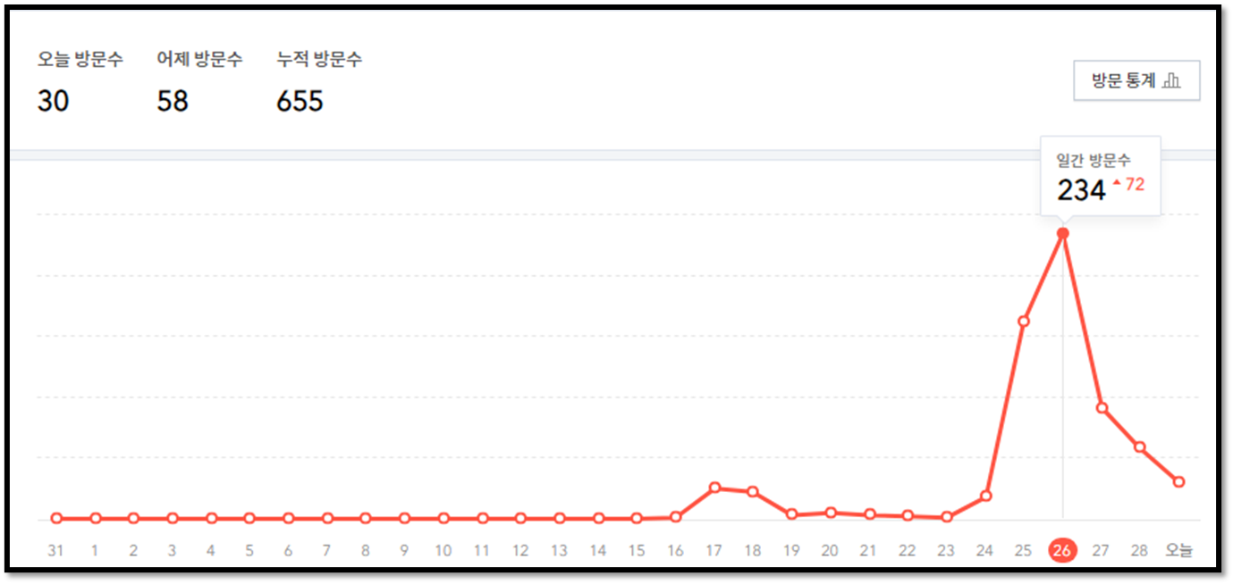 그 외에 많은 사람들이 얘기하는 백링크를 늘려야 한다는 건 알고는 있었는데 시간이 없어서 실행은 못했습니다. 그리고 제가 오픈톡방을 운영자이기도 하고, 다른 오픈톡방에도 많이 들어있어요. 그런데 활동할 시간이 없어서 그쪽에서는 트래픽을 못 일으켰네요.